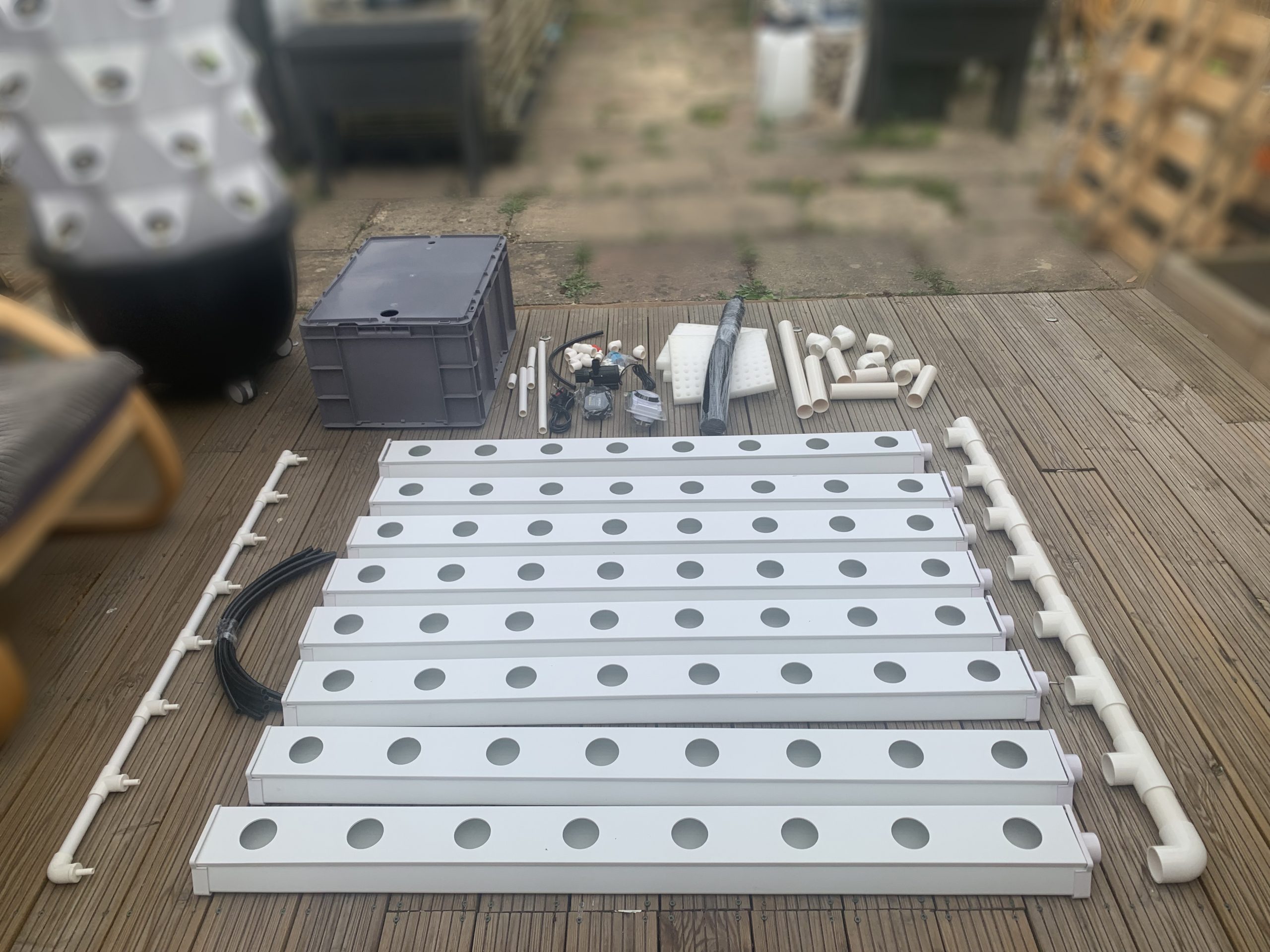 8 x Channels (8 Plant Holes) 1 x 74L Reservoir with Lid (Pre-Drilled Lid Holes) 1 x Pump with power supply and Timer Switch 1 x 1.5m Length of Black Vinyl Tubing 1 x Barbed Ball Valve x 1/2" BSP Fitting 64 x Net Pots 1 x 100 Grid of Seedling Grow Media Reservoir Internal Dimensions 565mm (L) x365mm (W) x 360 mm (H) Volume Capacity 74L